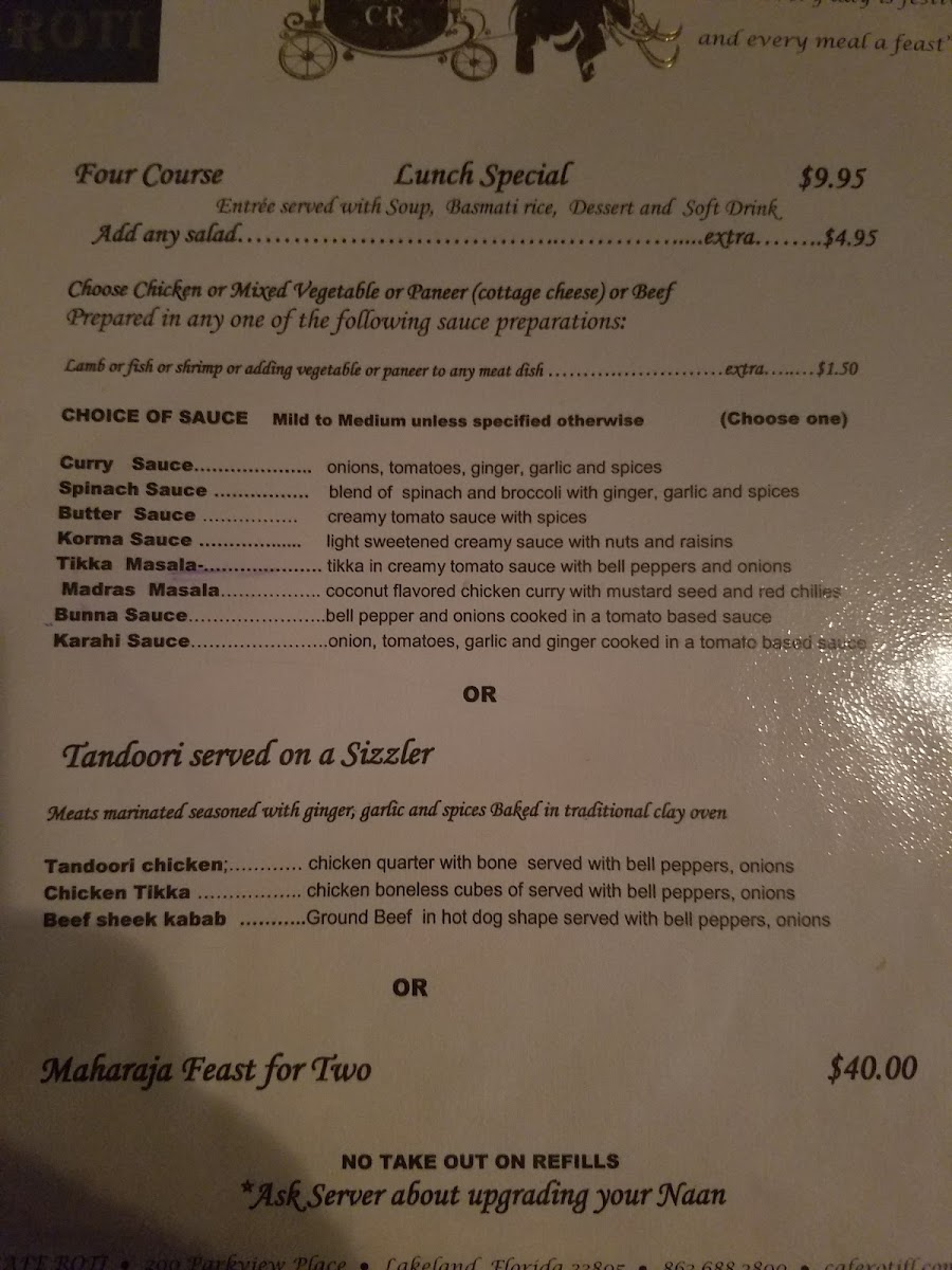 Welcome to Cafe Roti, a hidden gem nestled in downtown Lakeland, Florida. This vibrant eatery offers an authentic Indian dining experience that has garnered rave reviews from locals and visitors alike. The moment you step in, you are enveloped by warm, inviting ambiance paired with upbeat Indian tunes.